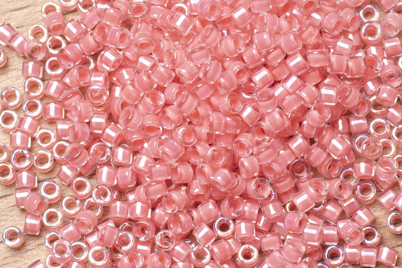 Бисер Япония MIYUKI Delica цилиндрический 11/0 5г DB-0070 розовый радужный с цветной линией