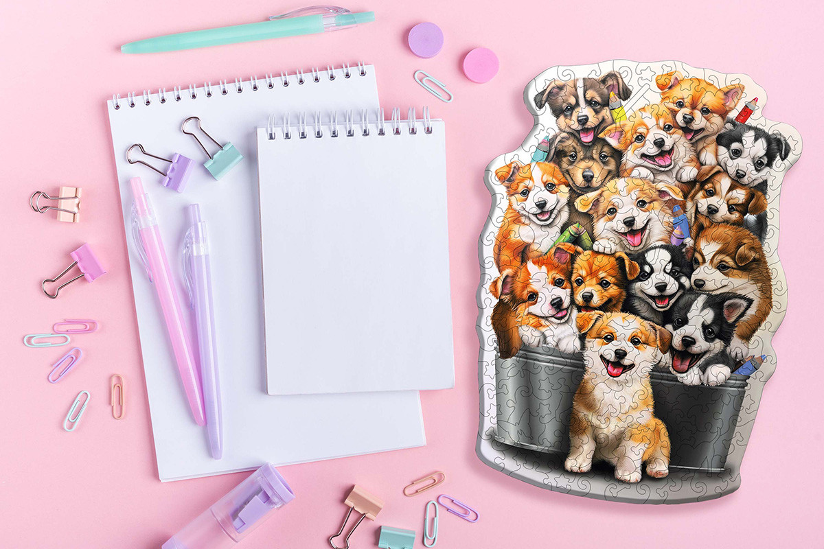 " ФРЕЯ" PZLF- 006 Пазл фигурный деревянный " Пирамидка из щенков" 161 элемент.