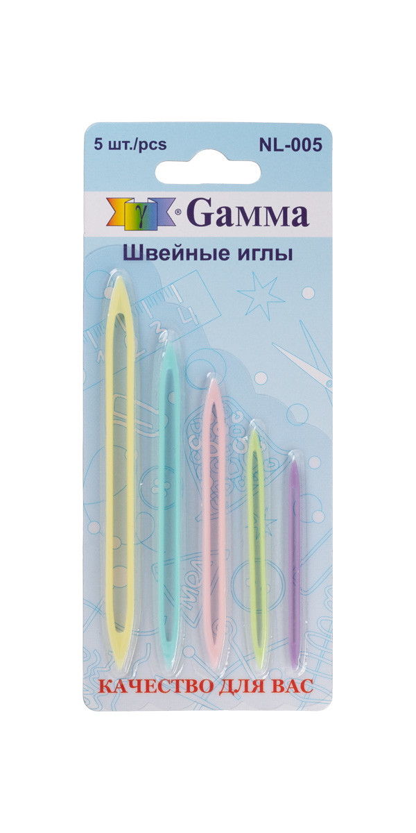 Иглы для шитья ручные " Gamma" NL- 005 для вязаных изд. 5 шт. в блистере ассорти ( 4. 6 см, 5. 2 см, 6. 5 см, 7, 3 см, 8, 6 см)