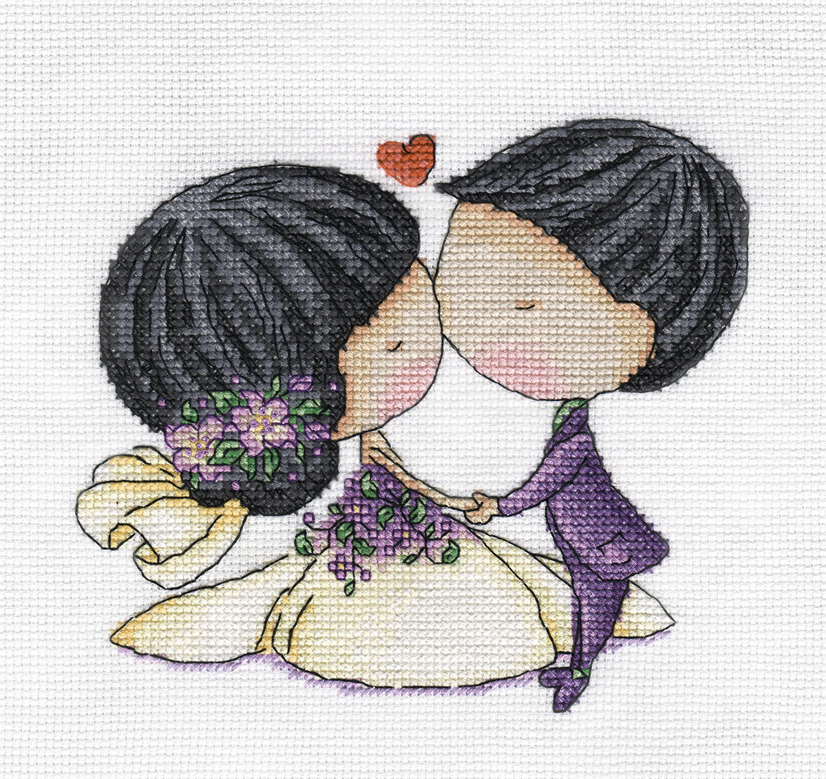 В набор для вышивания " Кларт" входит: канва аппретированная " Gamma" К04, хлопчатобумажные нитки мулине " Gamma" на держателе, специализированная игла с тупым концом " Gamma" для вышивания, подробная инструкция по вышиванию и схема. Вышитая пара - символ верности и любви.