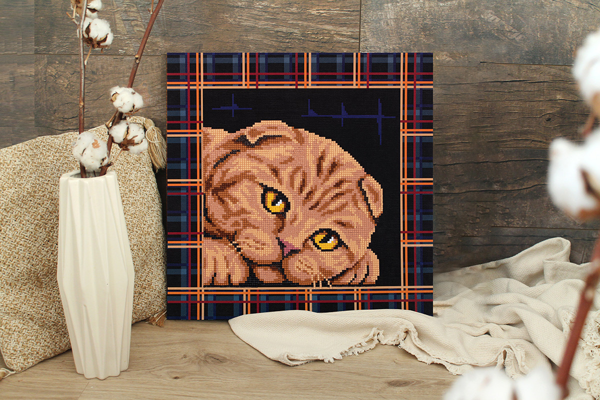 Кристальная ( алмазная) мозаика " ФРЕЯ" ALBP- 293 постер " Шотландская кошка" 30 х 30 см