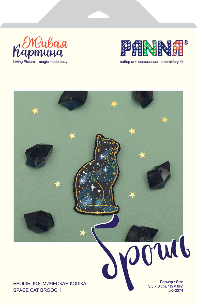 Набор для вышивания " PANNA" " Живая картина" JK- 2274 " Брошь. Космическая кошка" 3. 5 х 6 см