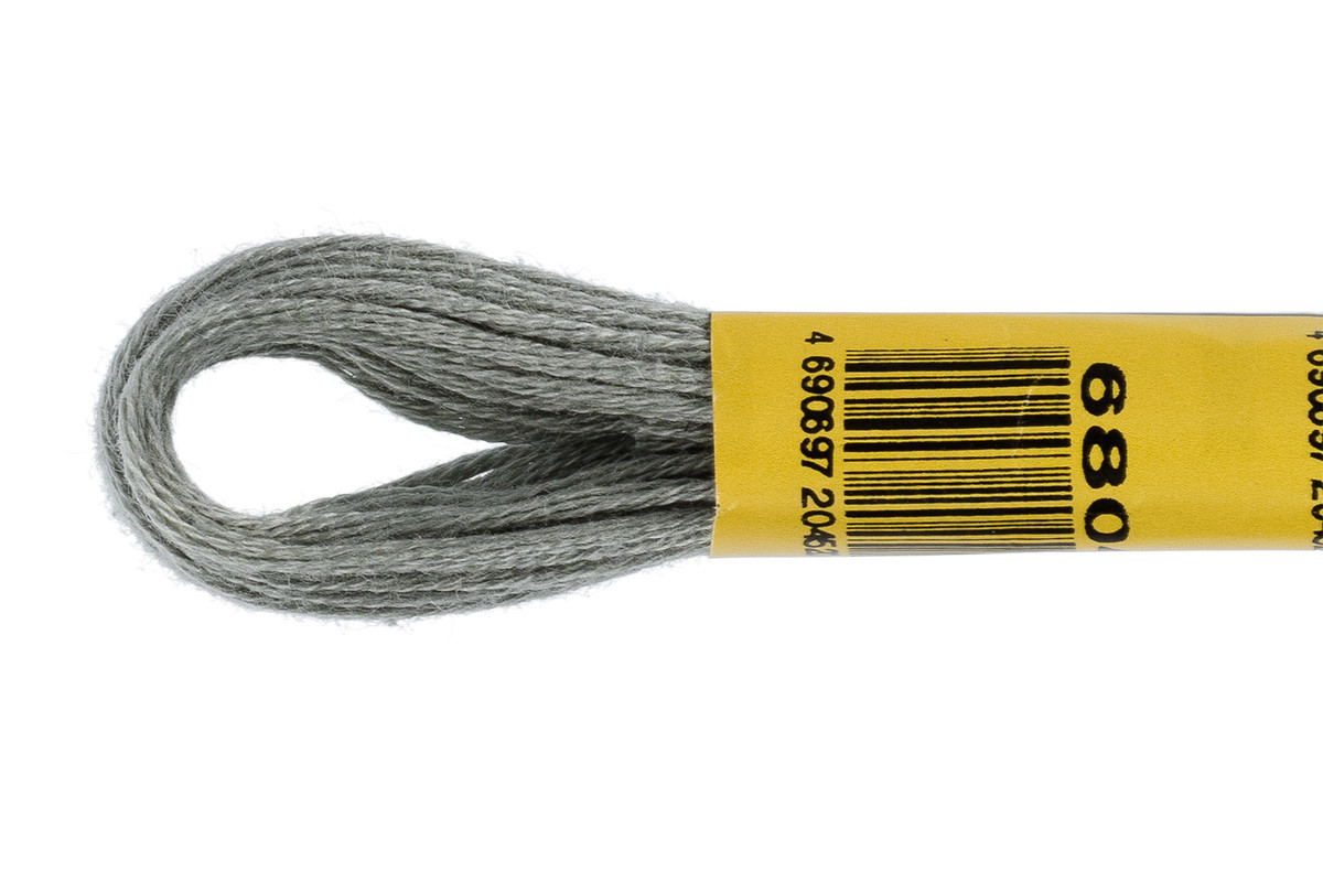 Нитки для вышивания " ПНК им. Кирова" мулине 100% мерсеризованный хлопок 8 м №6804 серый