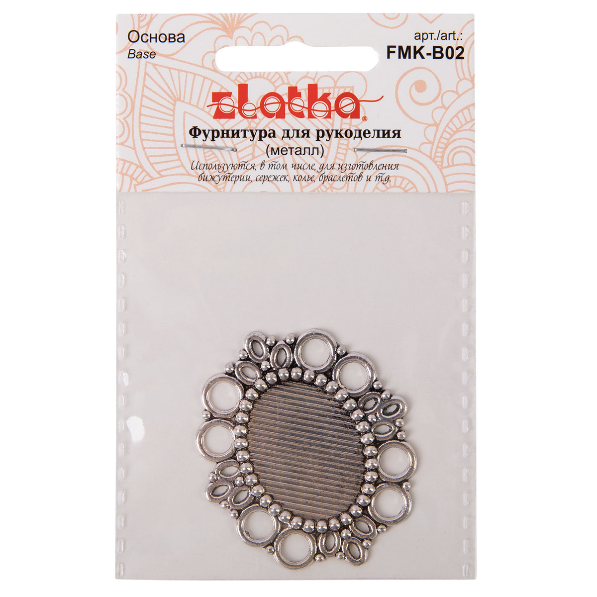Основа " Zlatka" FMK- B02 декоративная, металлическая применяется для обрамления кабошонов или камей. Используя её можно изготовить подвески, серьги, колье и многое другое. Овальной формы. Размер: 37х43 ммВнутр. размер: 18х24 ммСостав: цинковый сплавСообщить о неточности в описании