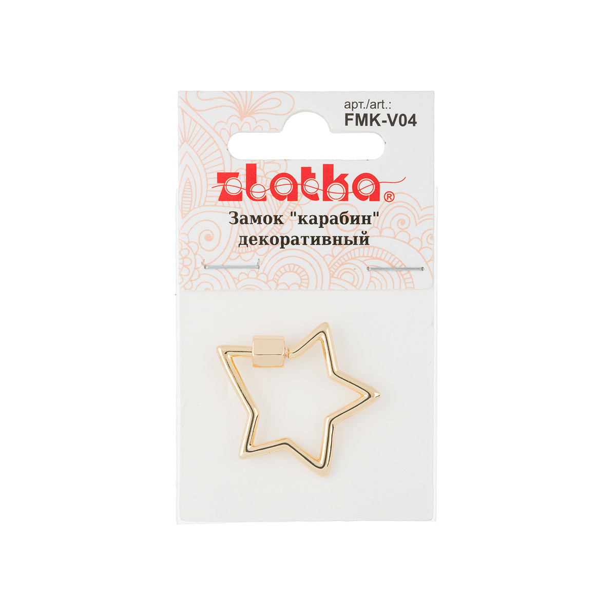" Zlatka" Замок " карабин" декоративный " звезда" FMK- V04 26 х 26 мм 1 шт №02 под золото