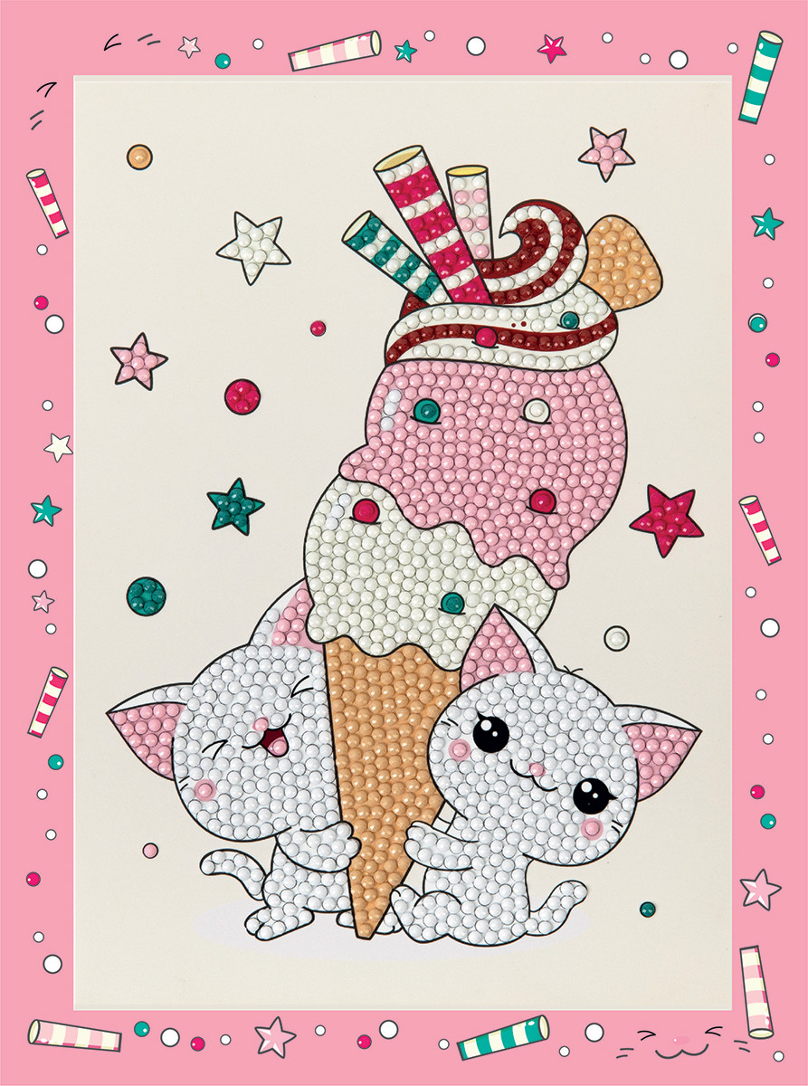 Кристальная ( алмазная) мозаика " ФРЕЯ" ALBP- 326 постер " Котенок с мороженым" 20 х 20 см